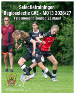 Op zondag 22 maart starten we voor de Regioselectie GAE de selectietrainingen voor de MO13 van volgend seizoen. Ben jij geboren in 2014 of 2015 en speel je op niveau tussen jongens of meiden, schrijf je dan in.