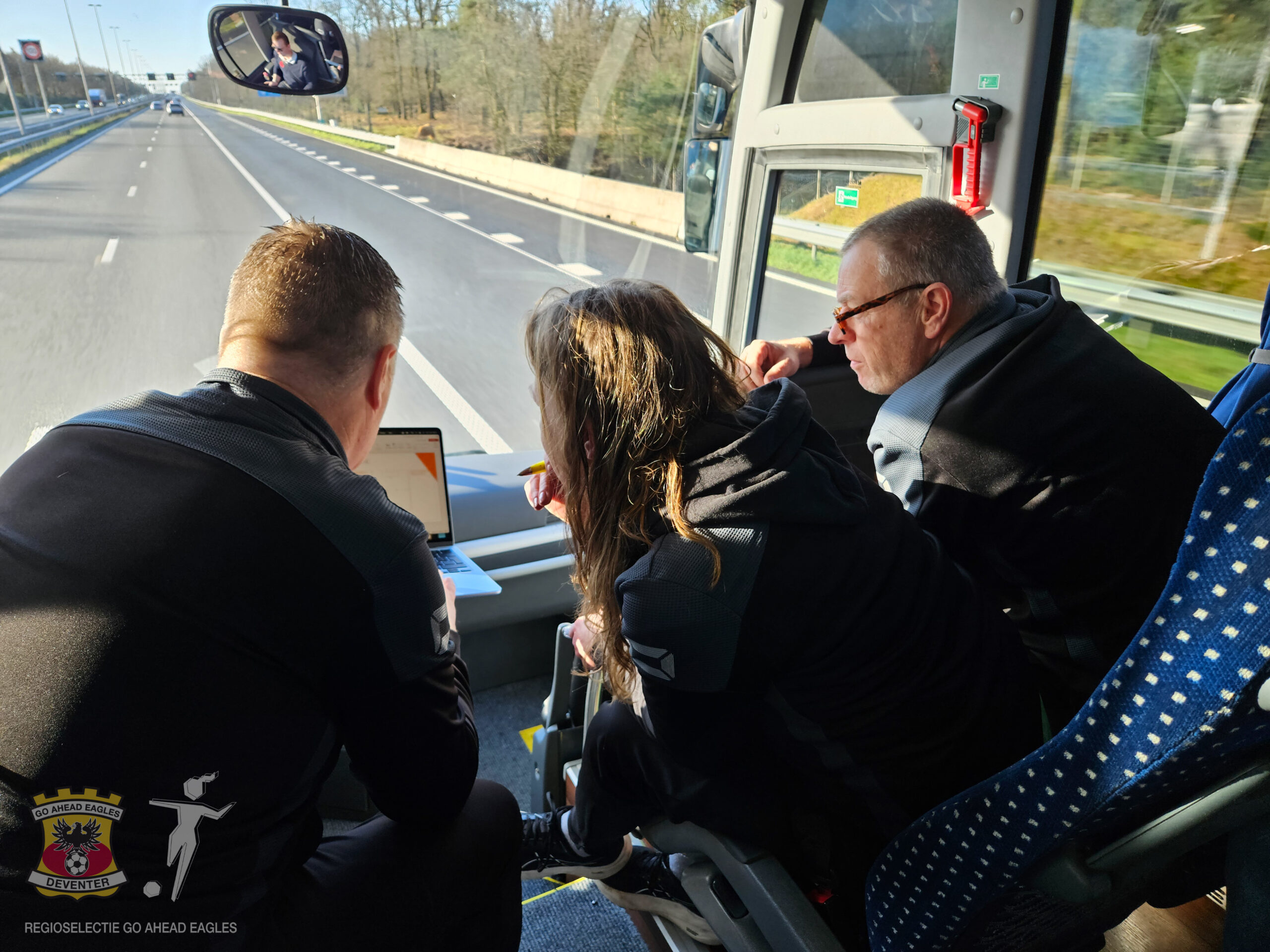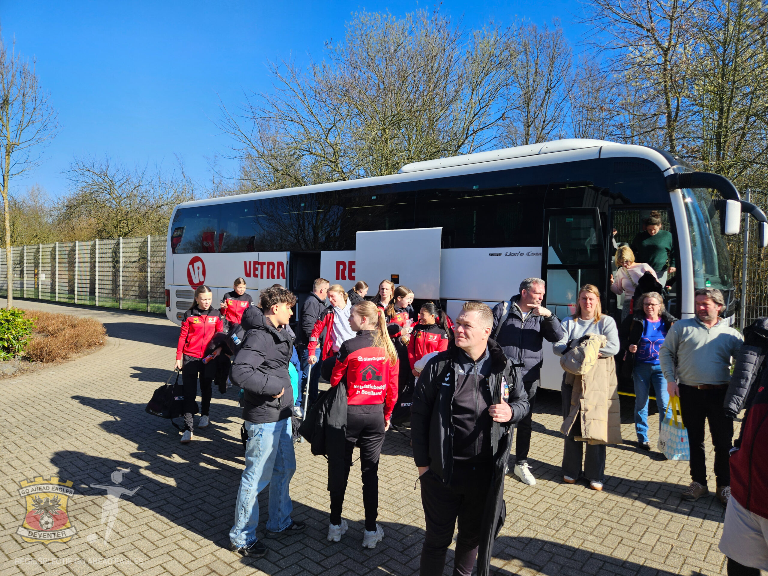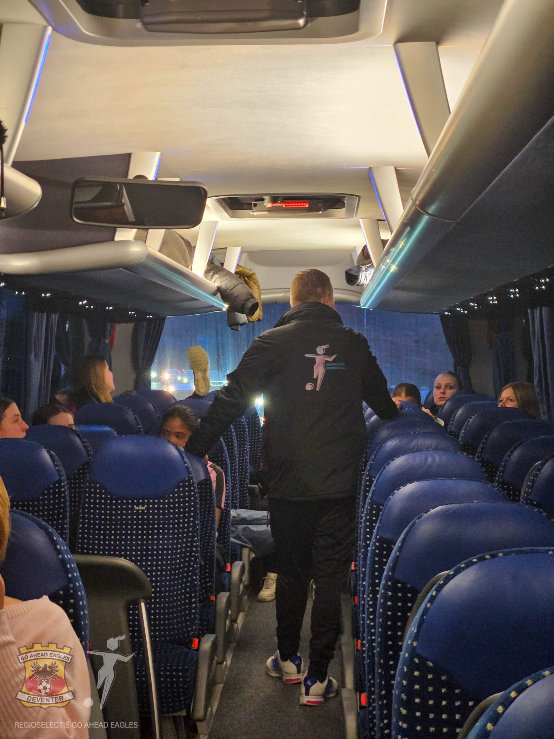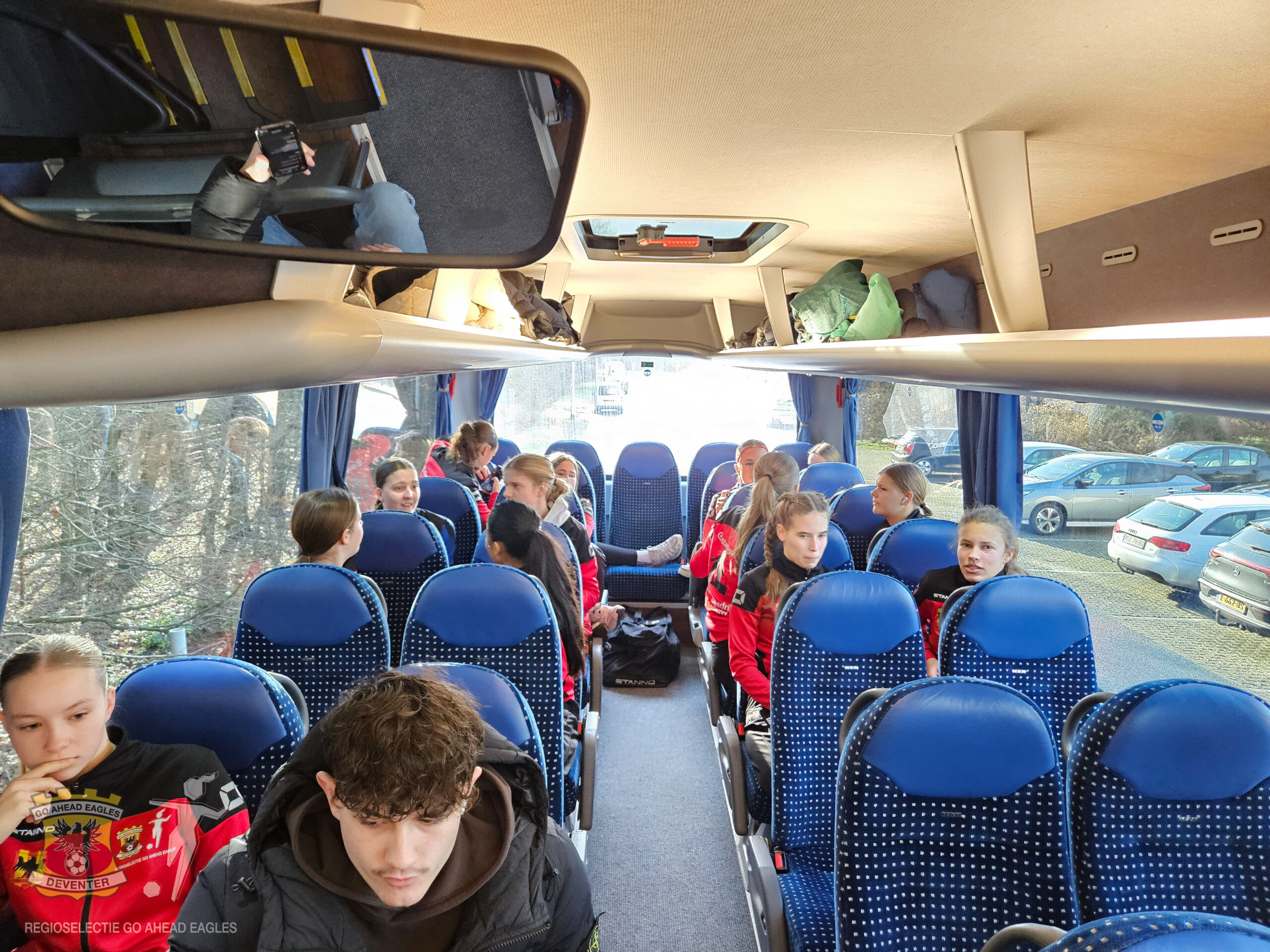 Het afreizen gebeurde in stijl! Het bestuur had voorgesteld om te kijken of het mogelijk zou zijn om zowel met ouders als de meiden met een touringcarbus die kant op te gaan. Met een vrijwillige bijdrage vanuit de ouders was dit gelukkig haalbaar.